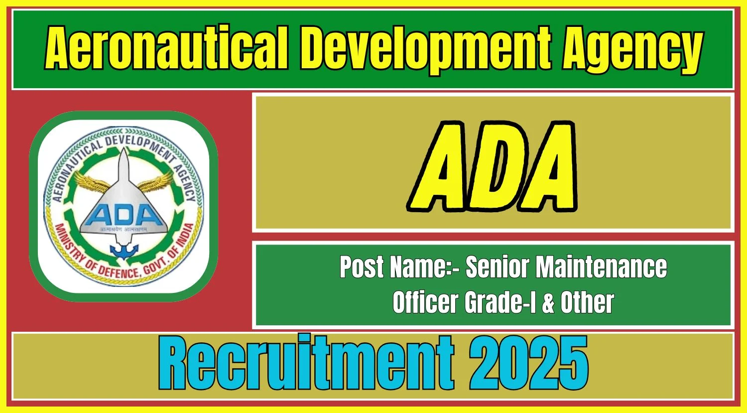 ADA Recruitment 2025: The Aeronautical Development Agency (ADA), an autonomous organization under the Ministry of Defence, Government of India, has released an official notification for the recruitment of Senior Administrative Officer Grade-I and Senior Maintenance Officer Grade-I.