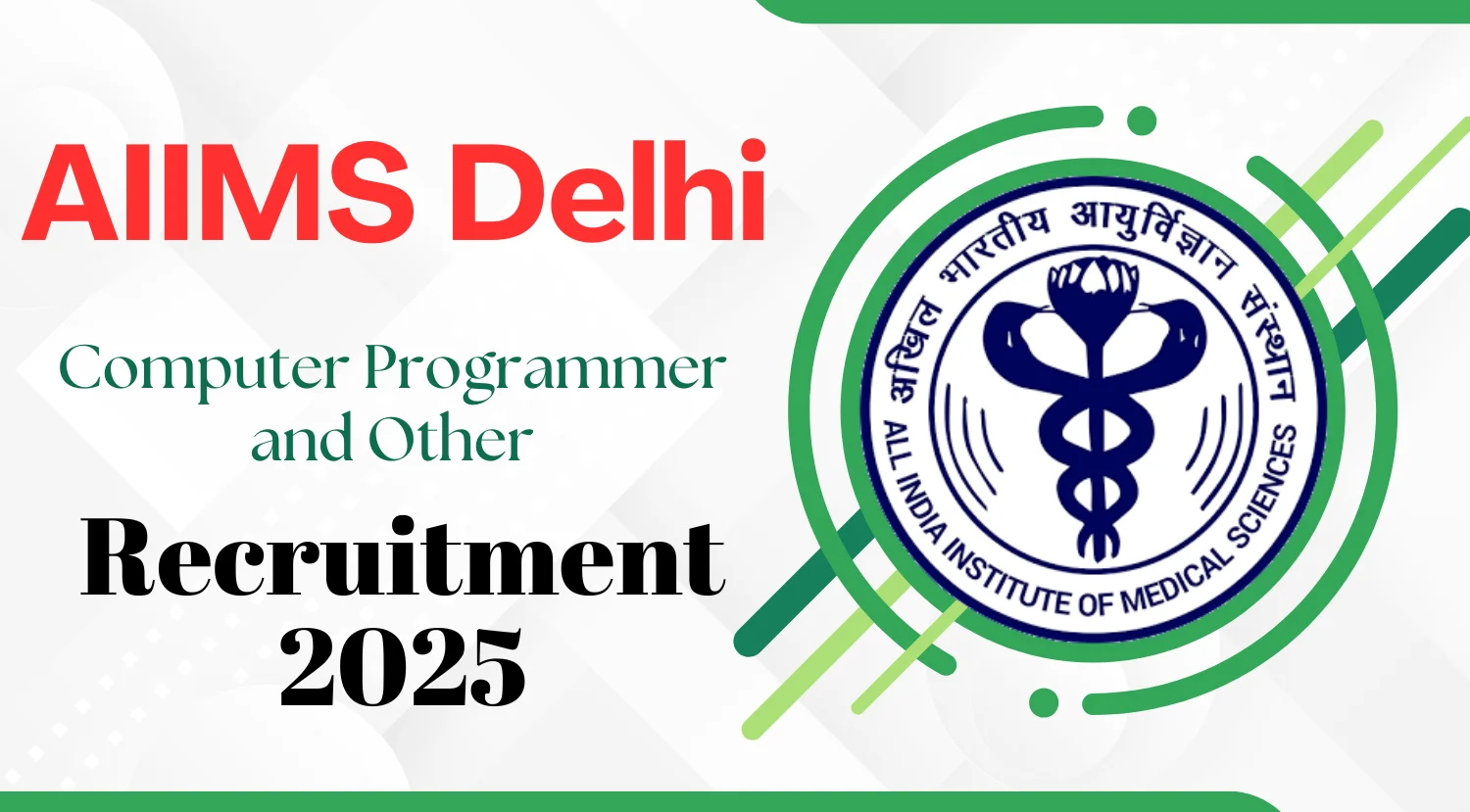 AIIMS Delhi Recruitment 2025, Apply for Computer Programmer and Other Posts