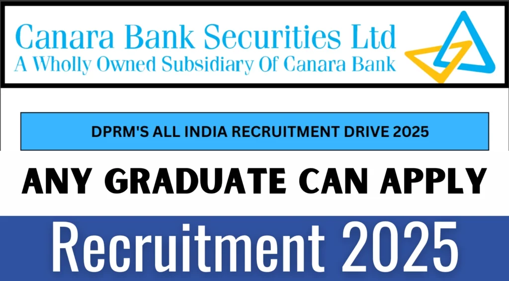 Canara Bank Securities Limited DPRM Trainee Recruitment 2025: Canara Bank Securities Limited has announced its DPRM-Trainee Recruitment 2025, offering a great opportunity for candidates looking to establish a career in the banking and financial services sector. Any graduate can apply, making it an inclusive opportunity for freshers and experienced individuals alike.