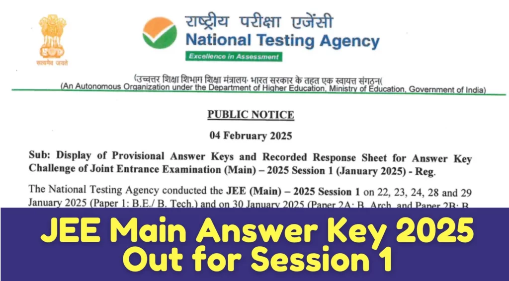 JEE Main Answer Key 2025 OUT for Session 1: The National Testing Agency (NTA) has officially released the JEE Main 2025 Session 1 Provisional Answer Key. Candidates who appeared for the examination can now access the official answer key and response sheet through the official website: https://jeemain.nta.nic.in. This allows students to verify their answers and raise objections if needed.
