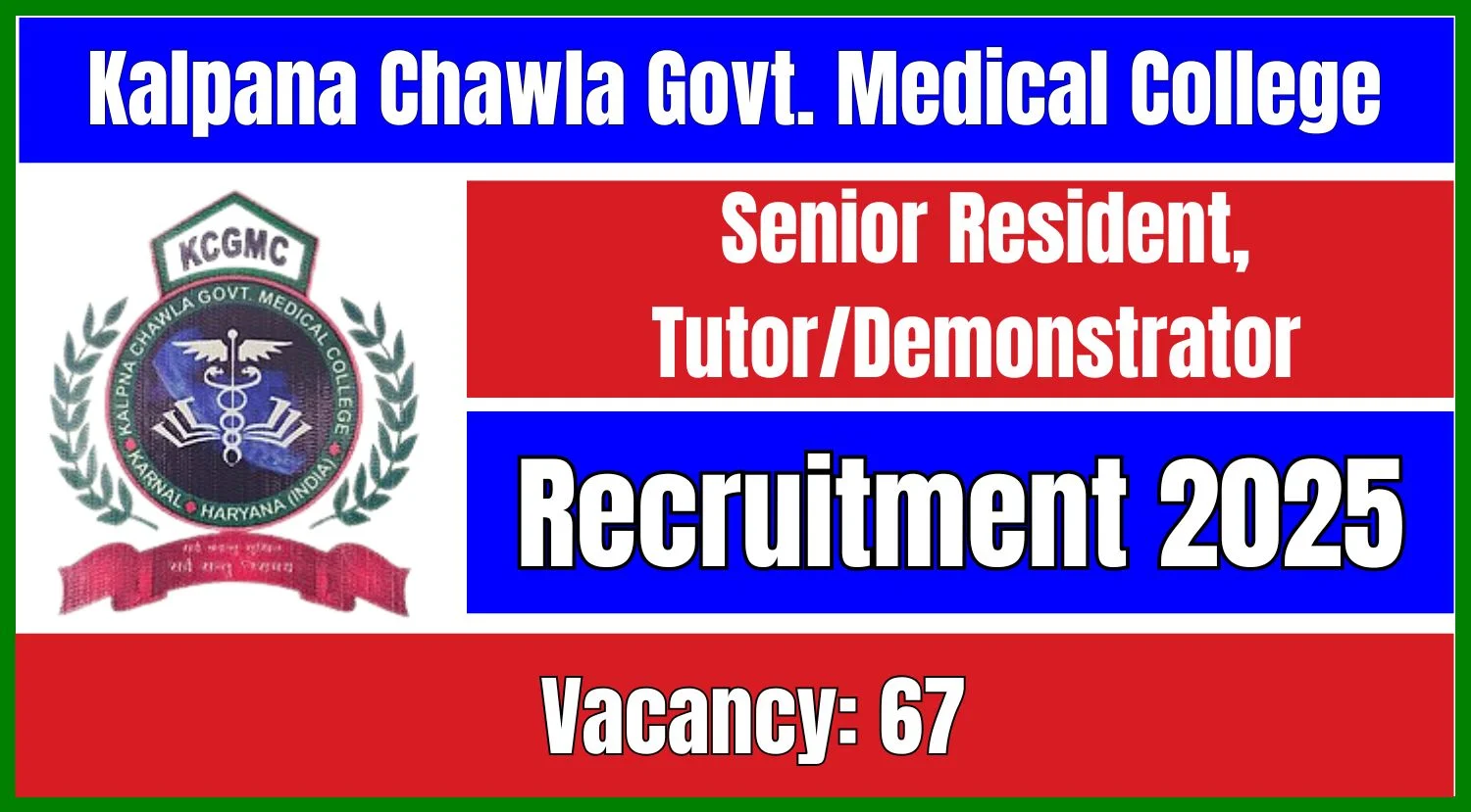 KCGMC Recruitment 2025: Kalpana Chawla Govt. Medical College (KCGMC), Karnal, Haryana, has announced the recruitment of Senior Residents, Tutors, and Demonstrators for the year 2025.