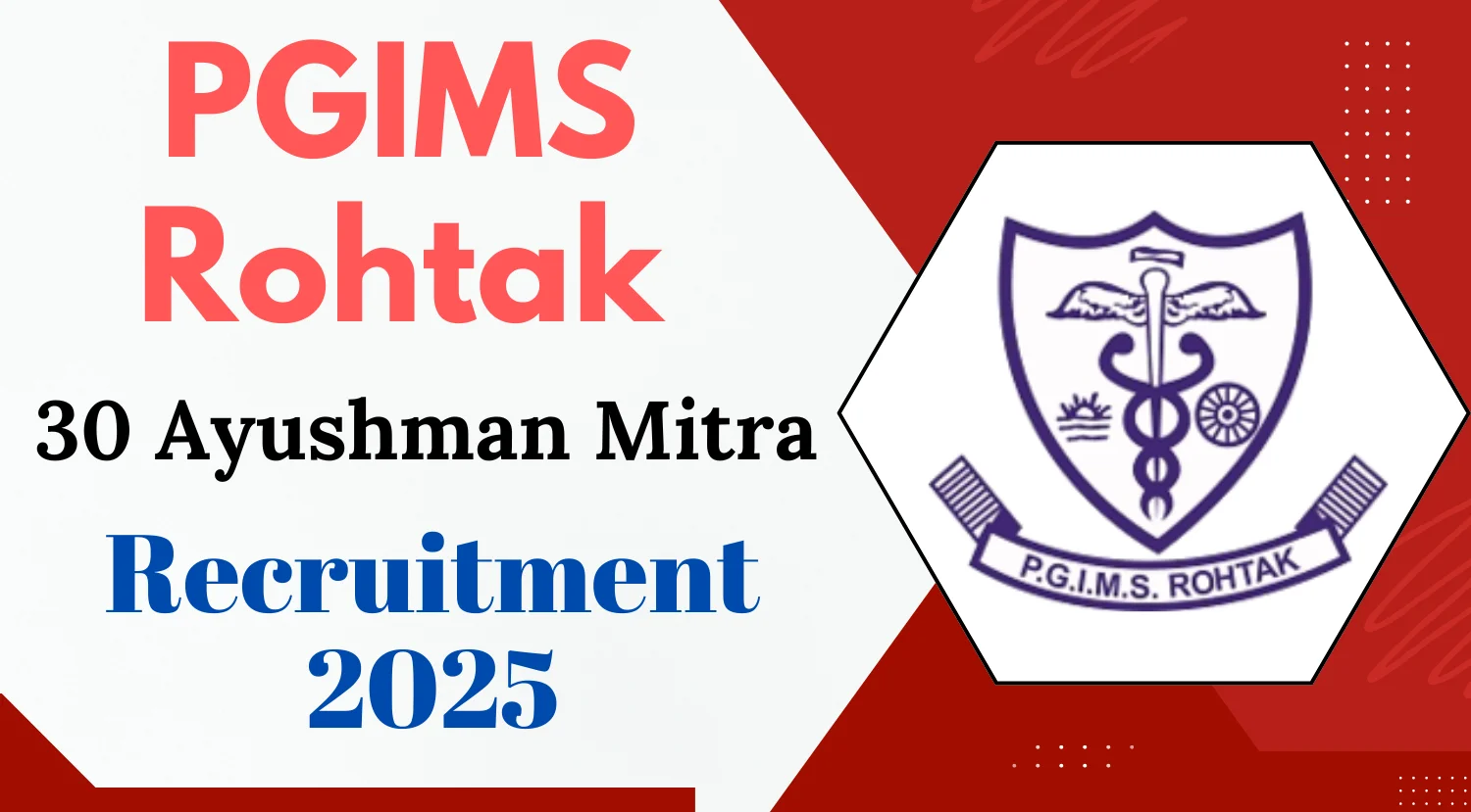 PGIMS Rohtak Ayushman Mitra Recruitment 2025: The Pandit Bhagwat Dayal Sharma Post Graduate Institute of Medical Sciences, Rohtak is inviting applications from eligible candidates for the 30 posts of Ayushman Mitras. Eligible and interested candidates can apply via email only.