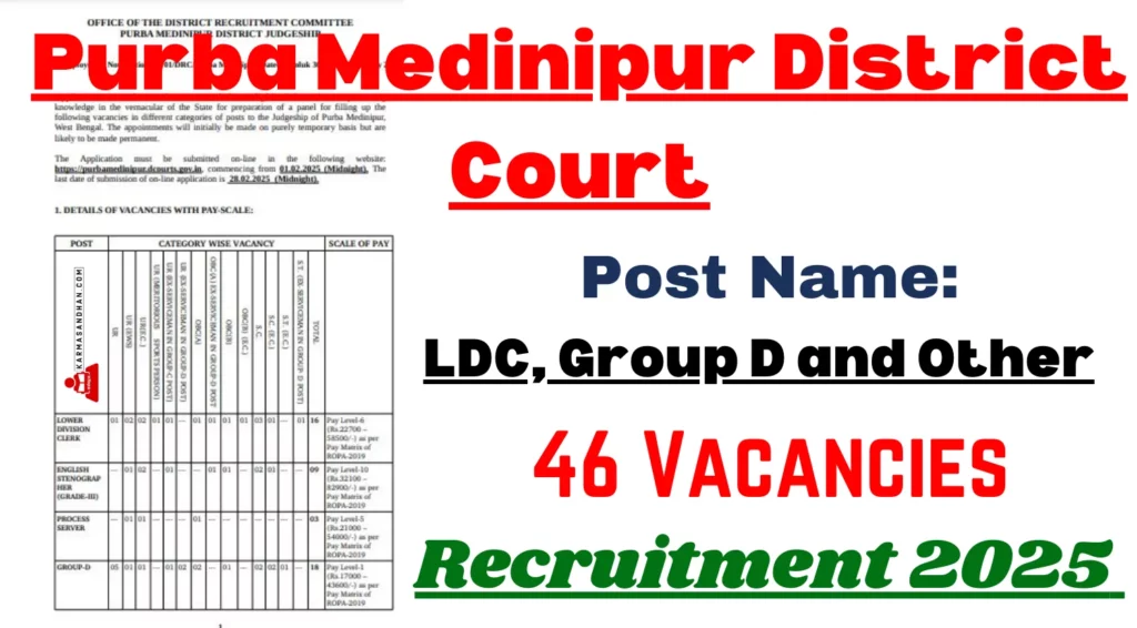 The post Purba Medinipur District Court LDC, Group D and Other Recruitment Notification 2025 Out, Apply Online for 46 Posts first appeared on Karmasandhan.