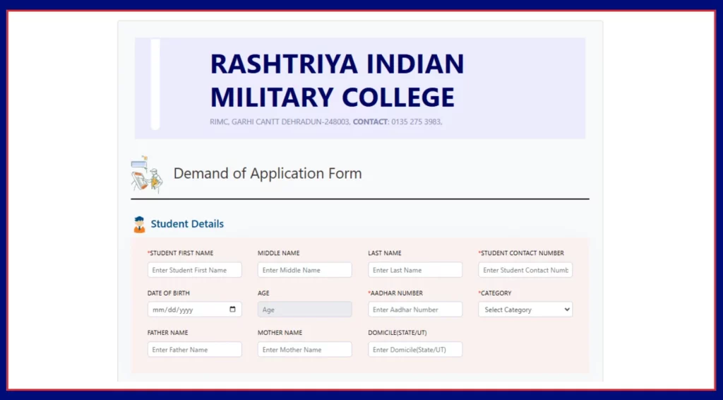 You can get the application form by Online Payment at www.rimc.gov.in or by sending a Demand Draft to RIMC, Dehradun.