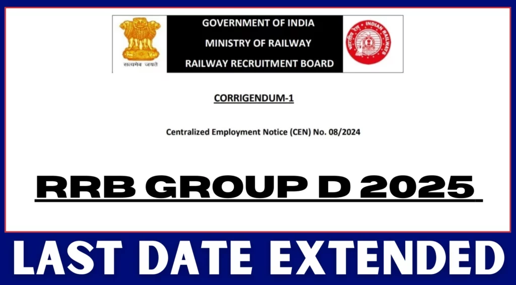 The post RRB Group D 2025 Apply Last Date Extended, Check Details Here first appeared on Karmasandhan.