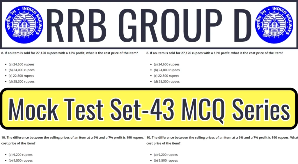 RRB Group D 2025 Mock Test SET-43: Are you preparing for the RRB Group D 2025 exam? Test your readiness with Mock Test SET-43, meticulously designed to help you evaluate your preparation level. This mock test provides a comprehensive mix of questions tailored to match the latest syllabus and exam pattern.