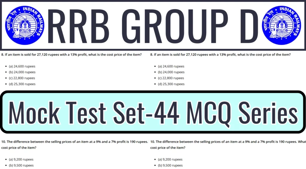 The RRB Group D 2025 Mock Test SET-44 is designed to evaluate your preparation level for the upcoming Railway Recruitment Board (RRB) Group D examination. This mock test simulates the actual exam environment and covers a variety of topics, including General Knowledge, Mathematics, General Science, and Reasoning.