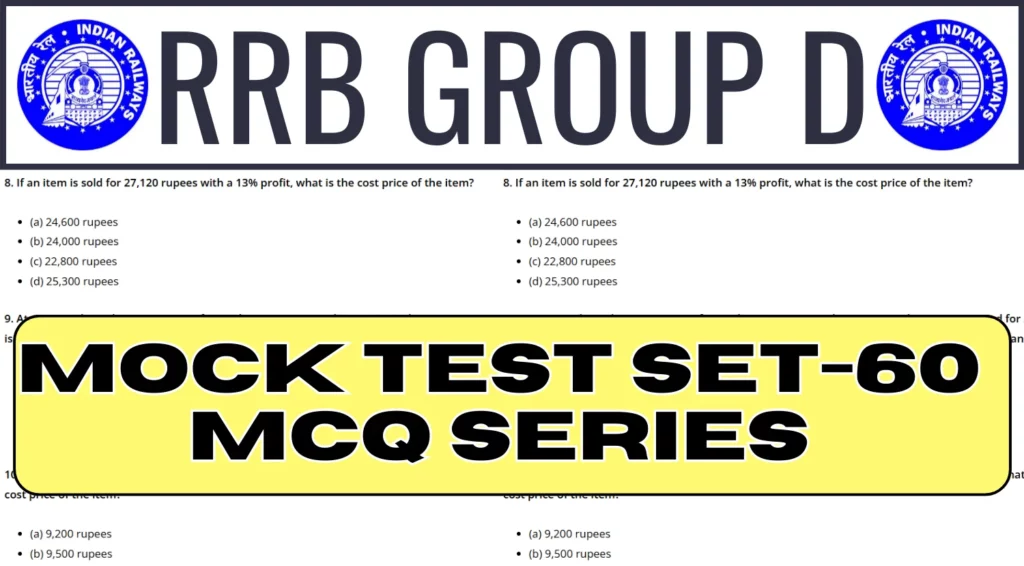 RRB Group D 2025 Mock Test SET-60: Are you preparing for the RRB Group D 2025 exam? It’s time to evaluate your preparation level with our Mock Test SET-60! This mock test is designed to help you assess your strengths and identify areas that need improvement. With a wide range of questions covering all key topics, this test simulates the actual exam environment, giving you a real-time experience of the RRB Group D exam.