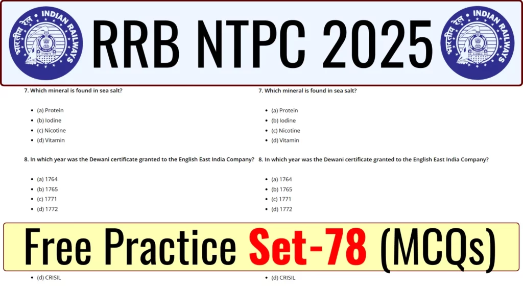 RRB NTPC 2025 Free Mock Test Set-78: The RRB NTPC 2025 CBT Exam is a highly competitive examination that requires thorough preparation and practice. To help you excel, we have prepared a Free Mock Test Set-78 designed to simulate the actual exam environment.