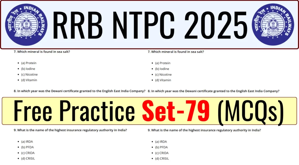 RRB NTPC 2025 Free Mock Test Set-79: The Railway Recruitment Board (RRB) NTPC 2025 Computer-Based Test (CBT) is a highly competitive exam for candidates aspiring to secure positions in the Non-Technical Popular Categories (NTPC). To help you prepare effectively, we present Free Mock Test Set-79, designed to mimic the actual exam pattern and difficulty level.