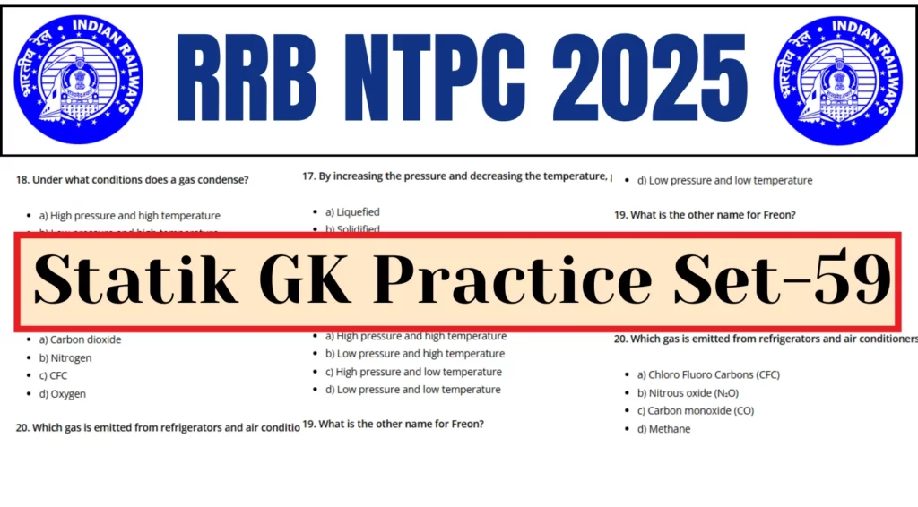 RRB NTPC 2025 Static GK Practice Set-59: This Static GK Practice Set-59 is a crucial resource for preparing for the Railway Recruitment Board (RRB) NTPC 2025 exam. Each question is designed to help you sharpen your knowledge and prepare effectively for the exam.