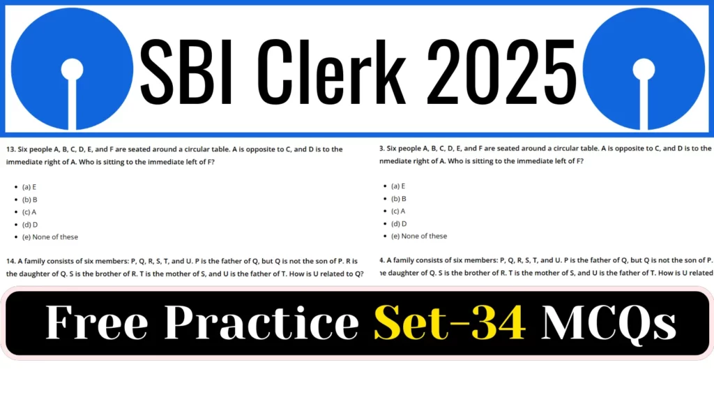 SBI Clerk 2025 Prelims Practice MCQ Series-34: Preparing for the SBI Clerk 2025 Prelims? Welcome to MCQ Series-34, designed to help you enhance your speed, accuracy, and problem-solving skills. This practice set covers key topics from Reasoning Ability, Quantitative Aptitude, and English Language, ensuring a well-rounded preparation.