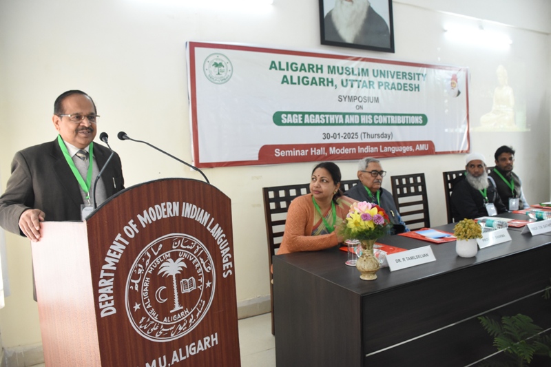 Aligarh Muslim University organized a symposium titled “Sage Agasthya and His Contributions” on January 30, at the department of Modern Indian Languages. The event commenced with Dr. R. Tamilselvan welcoming the speakers and participants, outlining the symposium’s objectives.