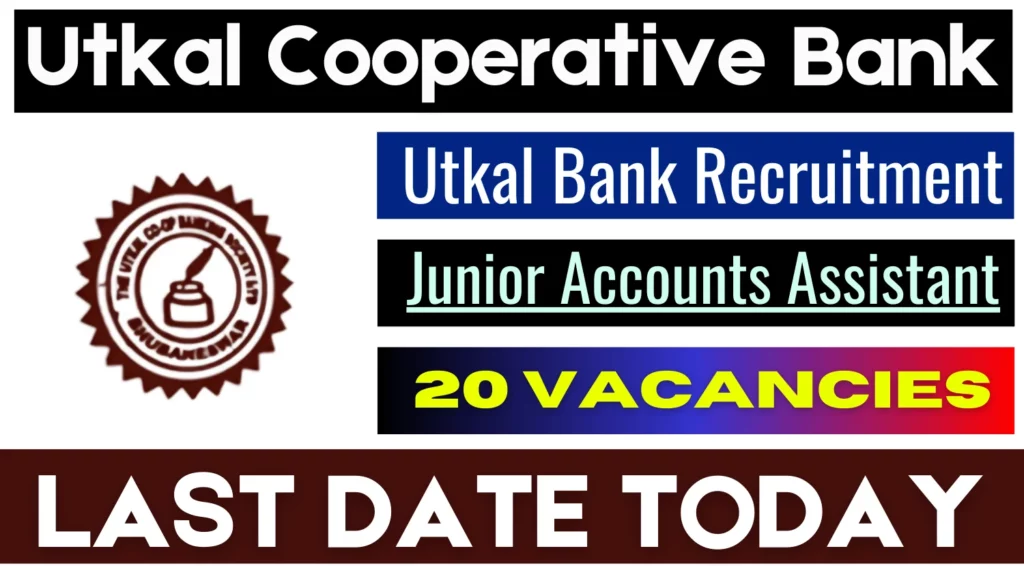 Utkal Cooperative Bank Junior Accounts Assistant Recruitment 2025: The Utkal Cooperative Bank Ltd. has announced a golden opportunity for job seekers in Odisha with the recruitment of 20 Junior Accounts Assistants. The last date to apply for this recruitment is today, so if you haven’t applied yet, this is your final chance to submit your application.