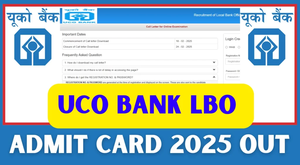 UCO Bank LBO Admit Card 2025: UCO Bank has officially released the admit card for the Local Bank Officer (LBO)...
