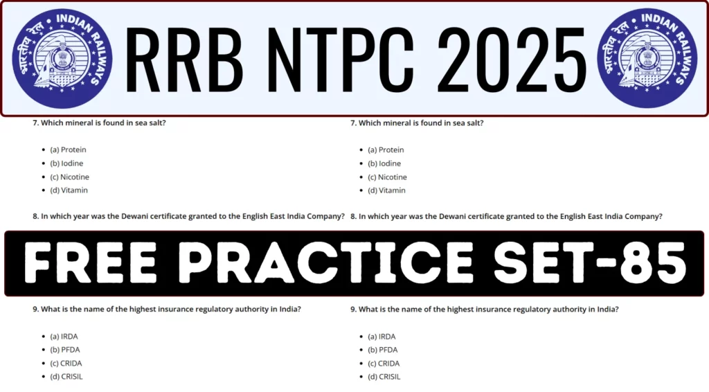 Railway RRB NTPC 2025 Free Mock Test Set-85: Prepare for the Railway RRB NTPC 2025 exam with our Free Mock Test Set-85, designed...