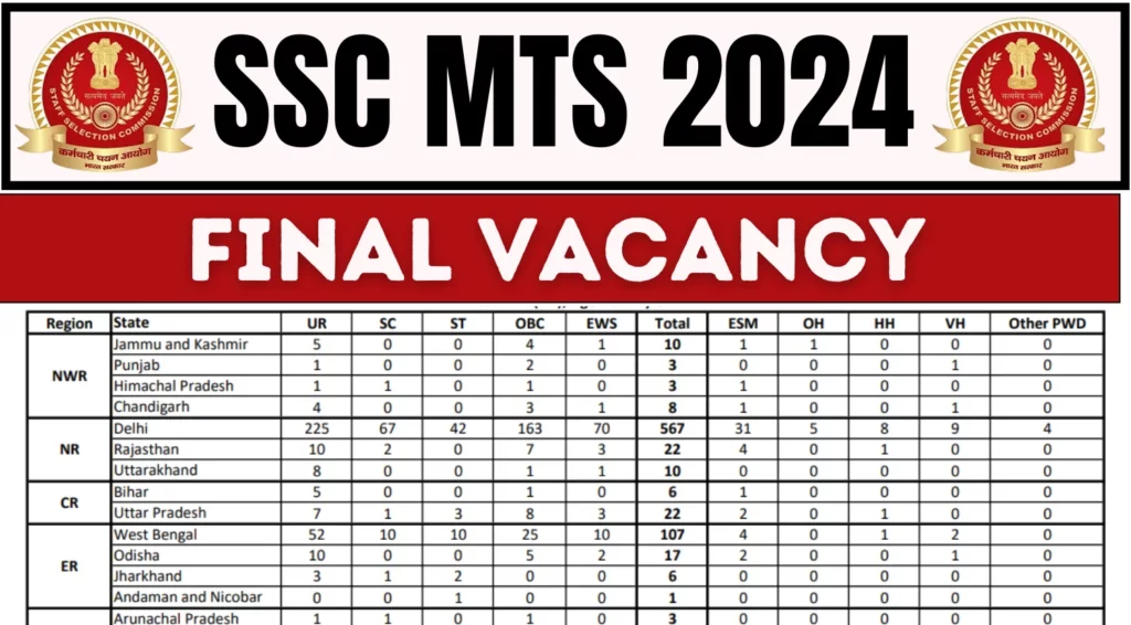 SSC MTS 2024: The Staff Selection Commission (SSC) has officially released the final vacancy details for the Multi-Tasking (Non-Technical) Staff...