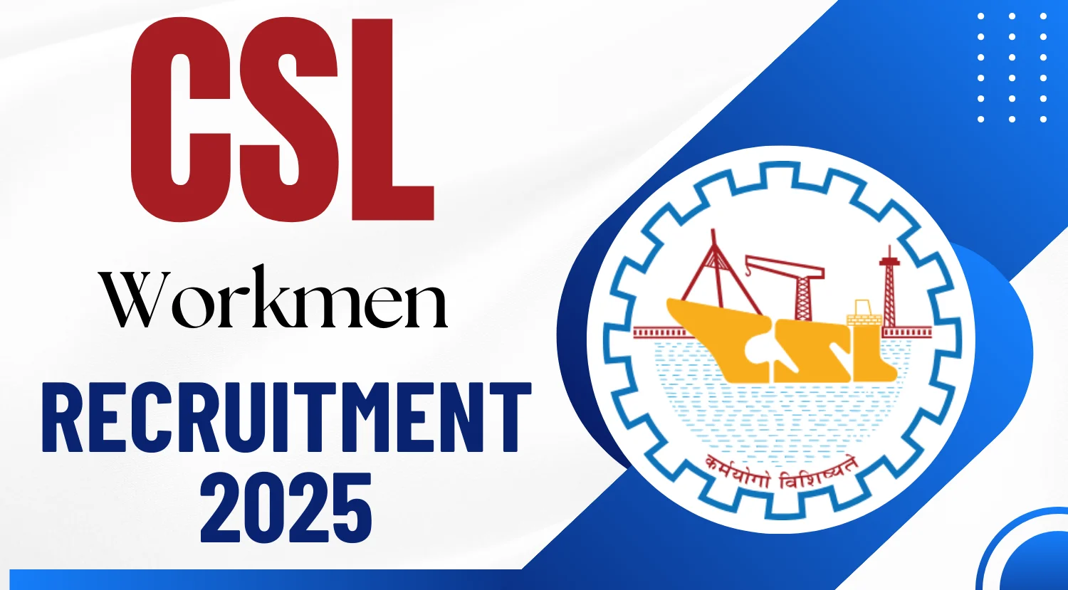 CSL Workmen Recruitment 2025: The Cochin Shipyard Limited (CSL) is inviting applications from eligible candidates for Various posts in the...