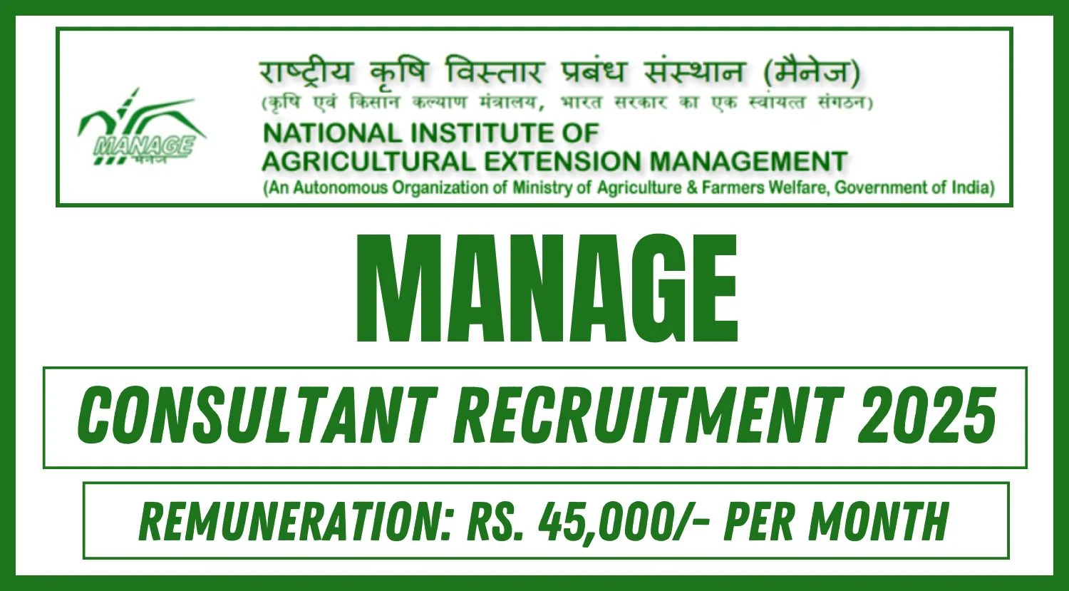 MANAGE Consultant Recruitment 2025: The National Institute of Agricultural Extension Management (MANAGE), located in Rajendranagar, Hyderabad, has announced a recruitment...
