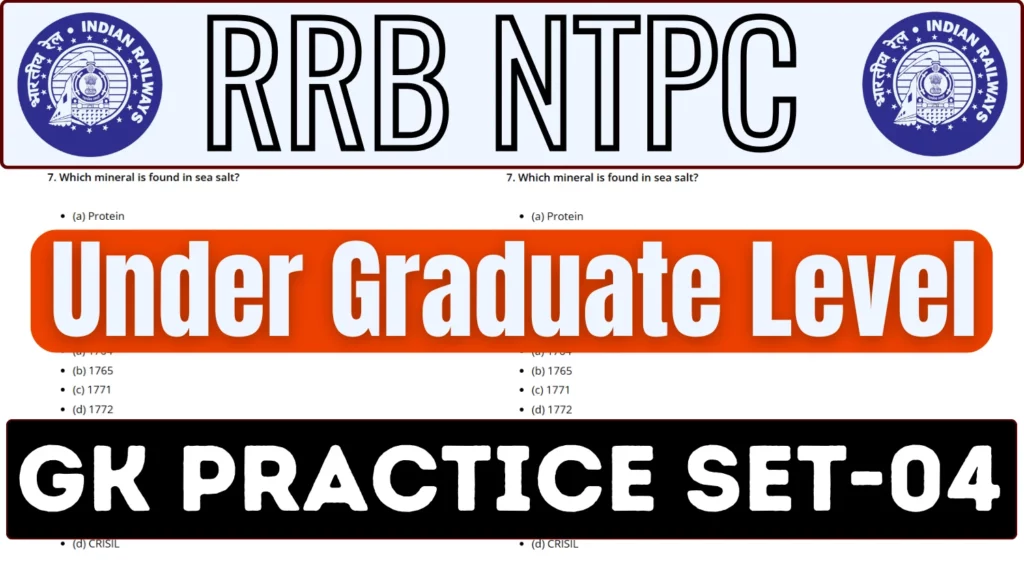 RRB NTPC Under Graduate Level GK MCQ Practice SET-4: The Railway Recruitment Board (RRB) Non-Technical Popular Categories (NTPC) exam is...