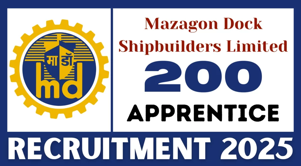 Mazagon Dock Shipbuilders Limited (MDL) has announced the MDL Apprentice Recruitment 2025 in various disciplines, including engineering and general streams....