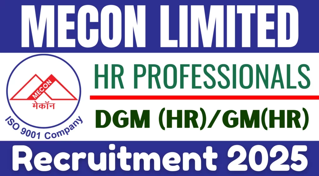 MECON Limited HR Professionals Recruitment 2025: MECON Limited invites applications from committed, qualified, and experienced professionals for HR positions in...