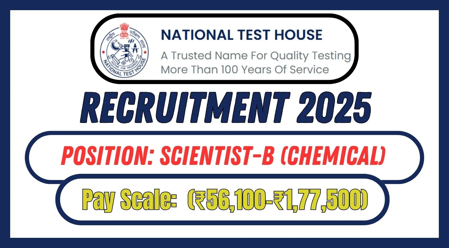 National Test House Recruitment 2025: The National Test House (NTH), under the Department of Consumer Affairs, Ministry of Consumer Affairs,...