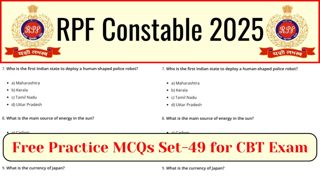 RPF Constable 2025 Practice Mock Test SET-49: The RPF Constable 2025 recruitment is underway, and aspiring candidates are gearing up...