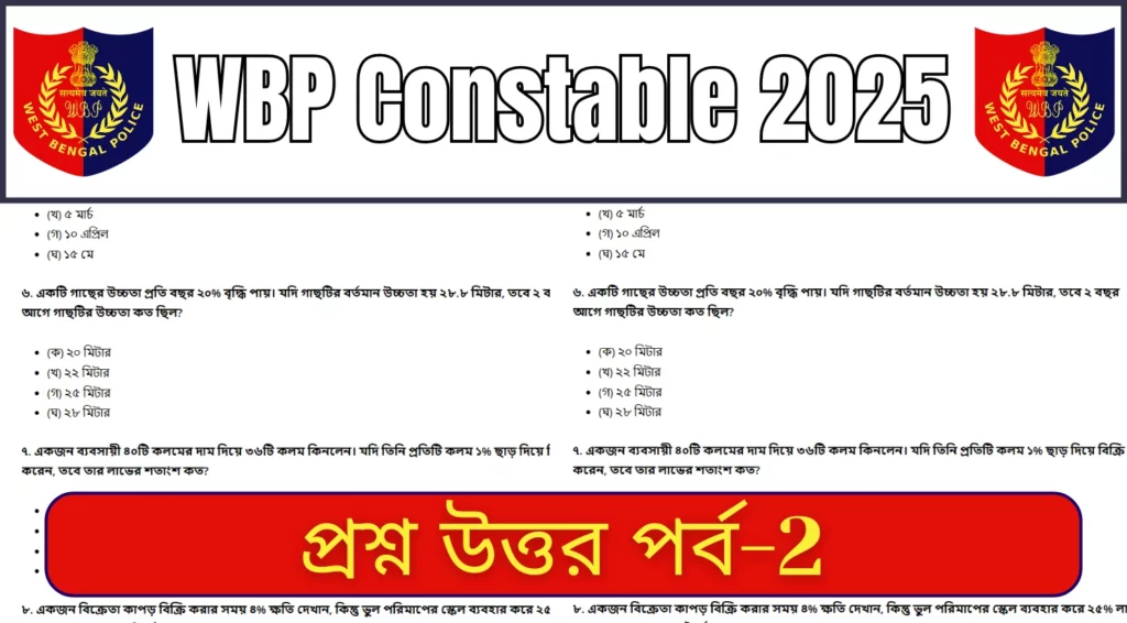 WB Police Constable 2025 Mock Test Set-2: স্বাগতম WB Police Constable Mock Test Set-2-এ। এই সেটটি WB Police Constable 2025...